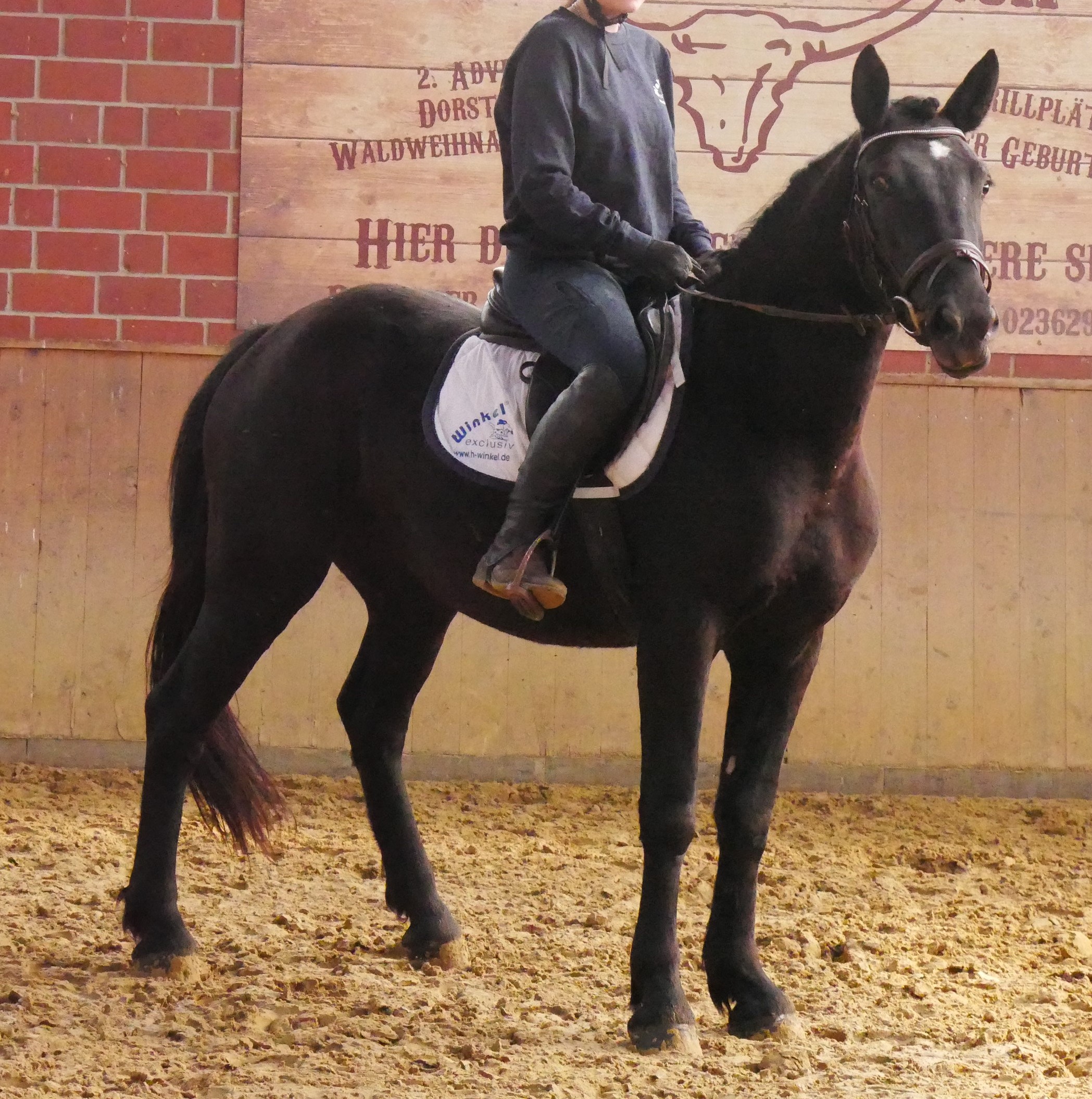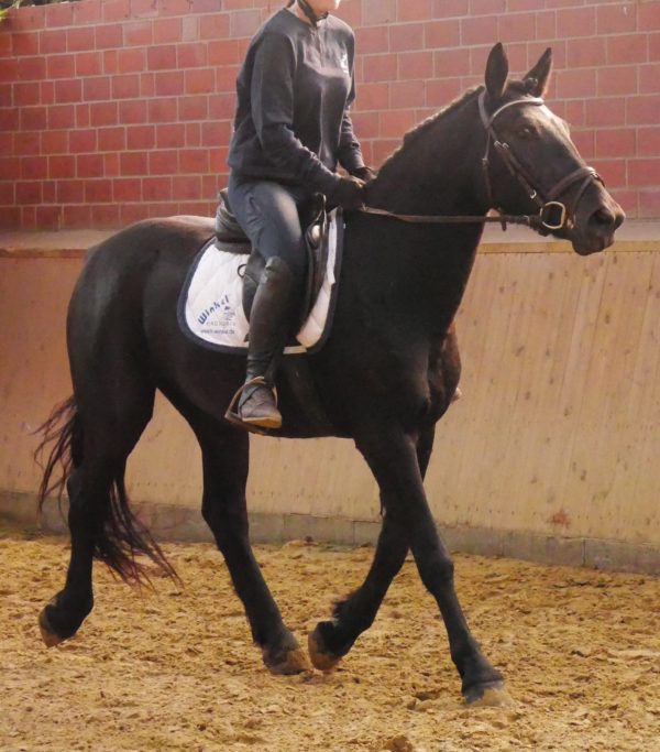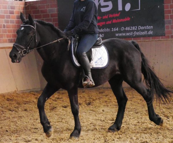 Sie ist unerschrocken , brav im Umgang und wurde bisher im Gelände , Platz und Halle geritten.