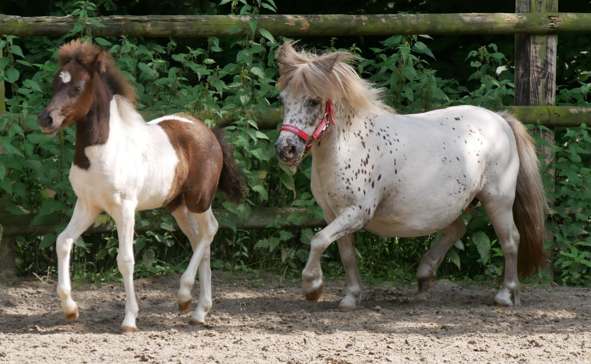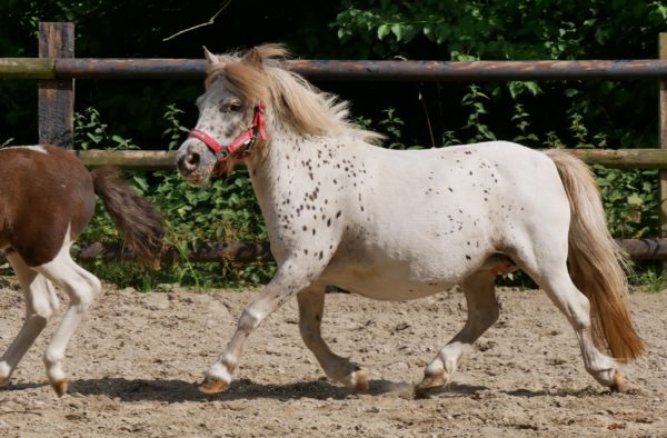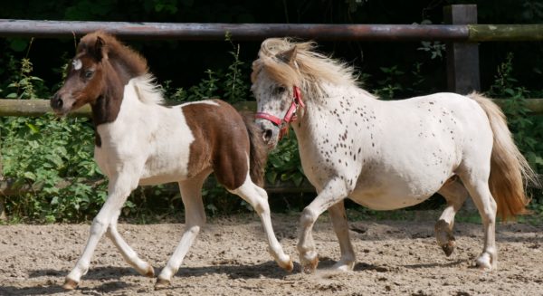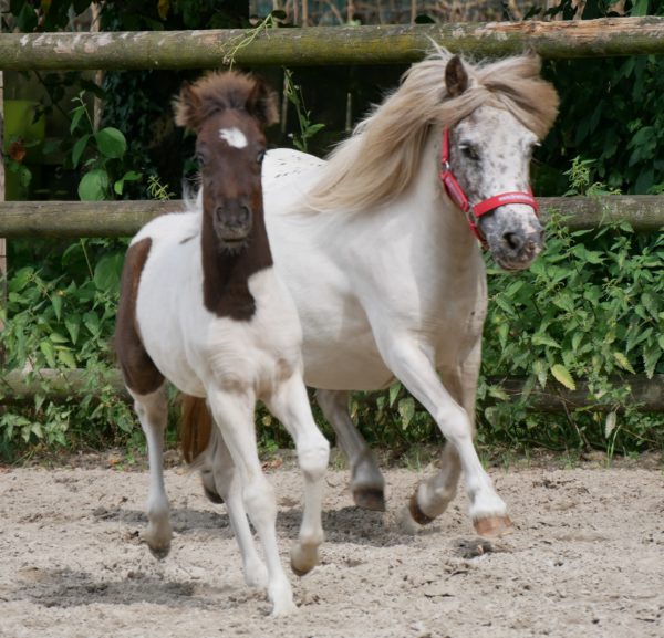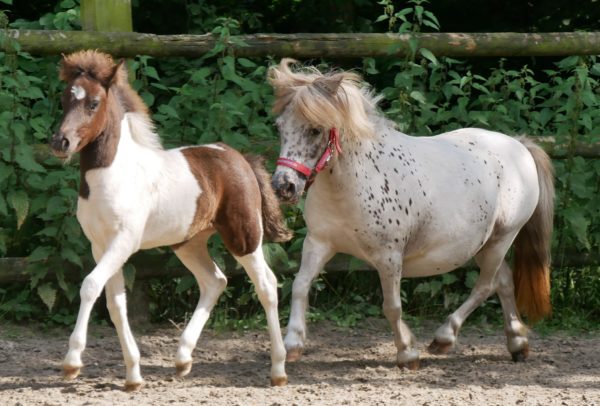 Mini Shetland Pony Elza mit Pinto Fohlen