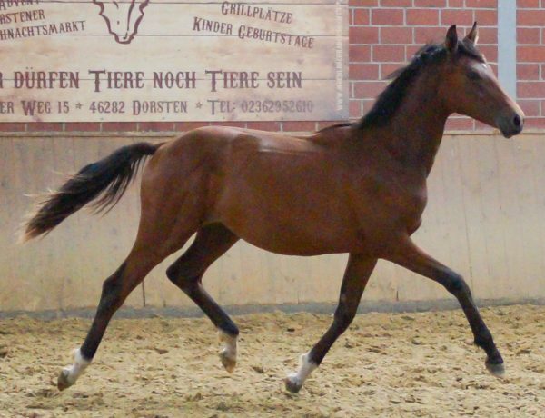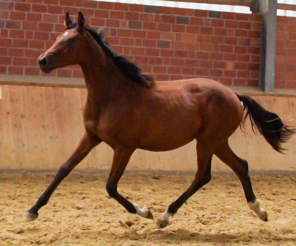 Sie ist mit drei schwungvollen, elastischen GGA ausgestattet , ist brav im Umgang und beherrscht das Fohlen ABC