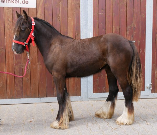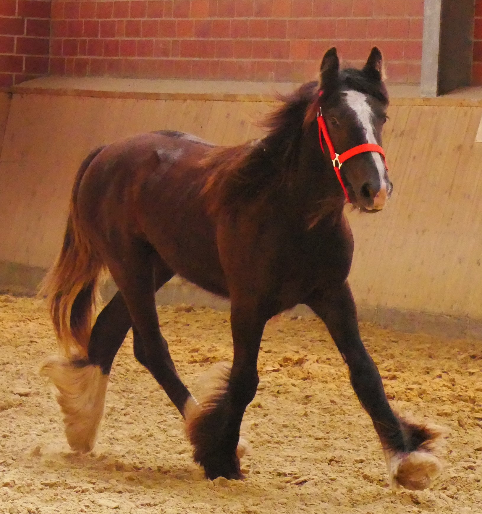 Tinker Jährling mit guten Bewegungen in dunkler Jacke